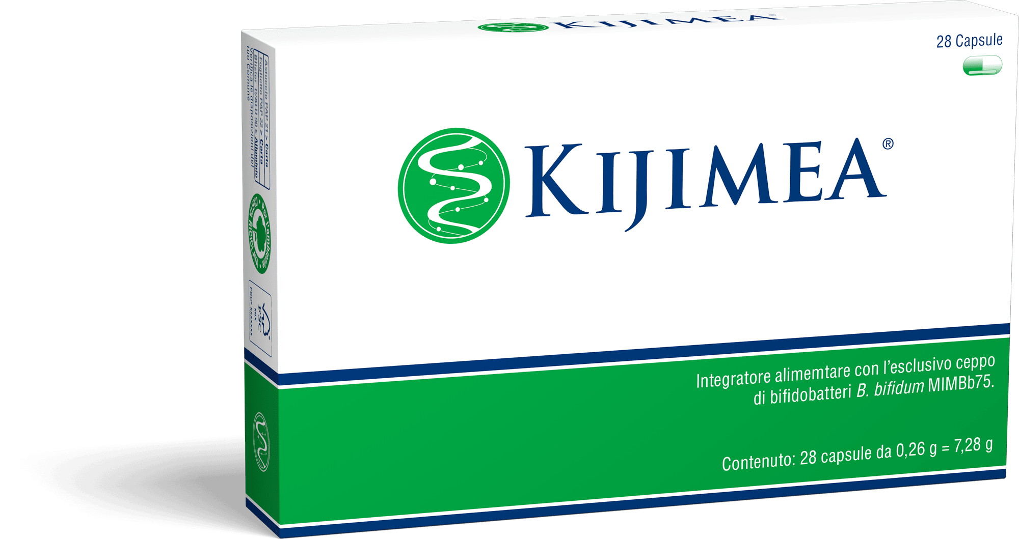 Kijimea® è un integratore alimentare con l‘esclusivo ceppo di bifidobatteri B. bifidum MIMBb75. Una capsula contiene 500 milioni di microorganismi vivi.