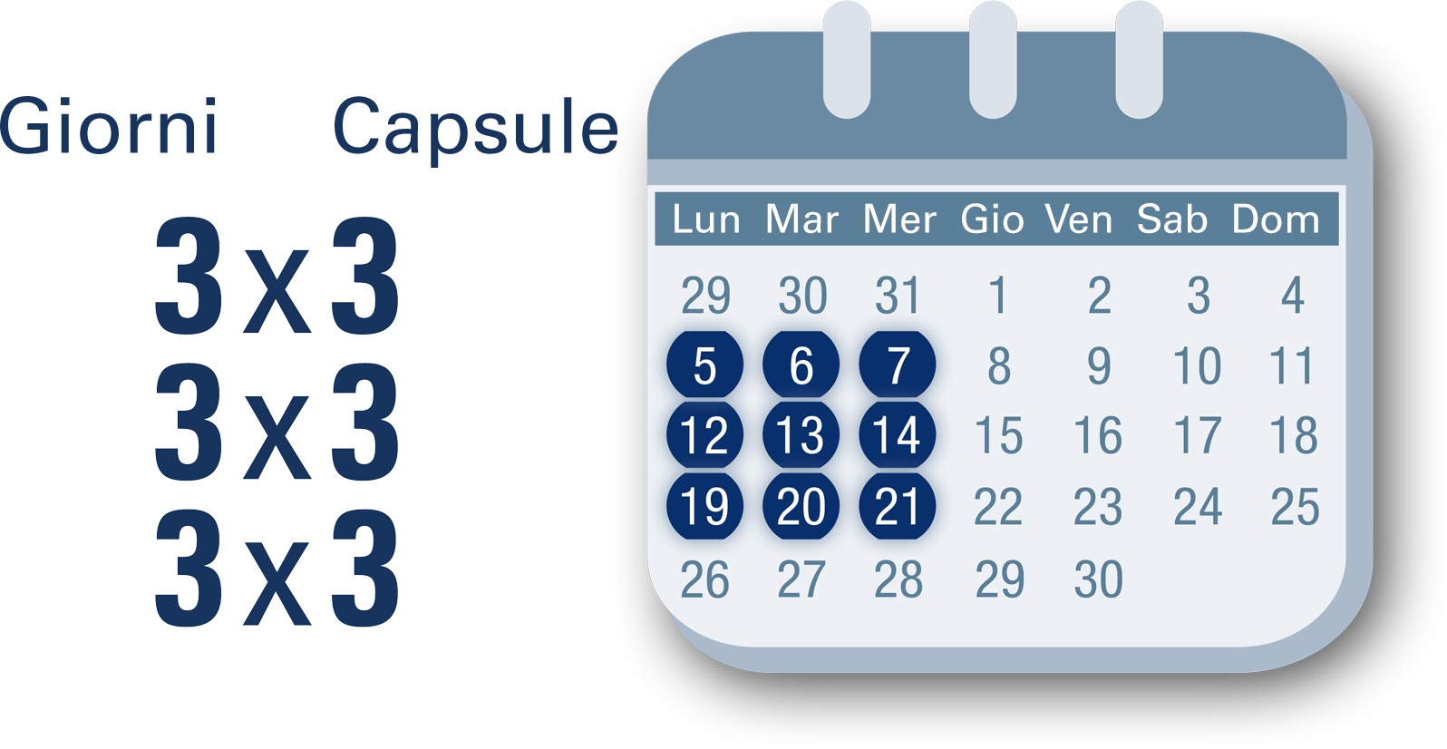 Adulti: assumere 3 capsule una volta al giorno senza masticare con una sufficiente quantità di liquido, durante uno dei pasti principali (mattino, mezzogiorno o sera) per una durata di 3 giorni (ciclo di 3 giorni con un totale di 9 capsule = 1 ciclo). Ripetere il ciclo a distanza di una settimana per almeno 3 cicli.