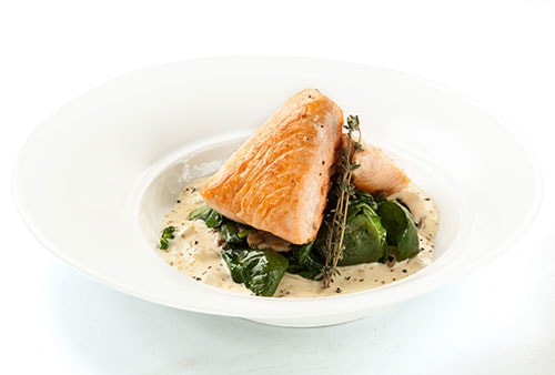 Pesce su letto di spinaci con salsa curry e cocco
